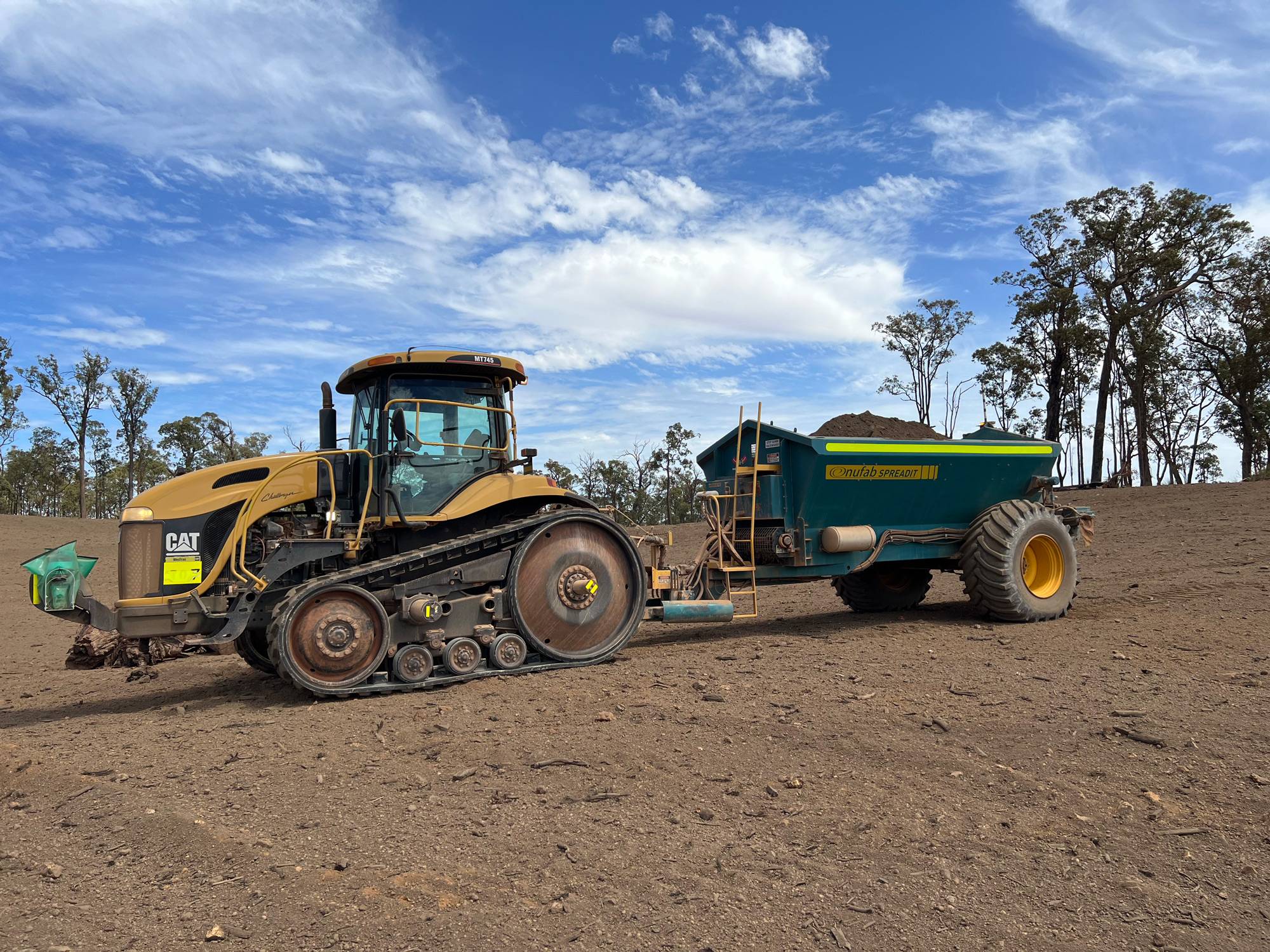 With our CAT Challenger Tractor and spec-built 20m3 Heavy Duty Nufab Spreader, we are capable of spreading anything from compost, manures, lime, gypsum, fertiliser, gravel and clay, blue metal, proving ideal for mine site rehabilitation work, road maintenance and construction.